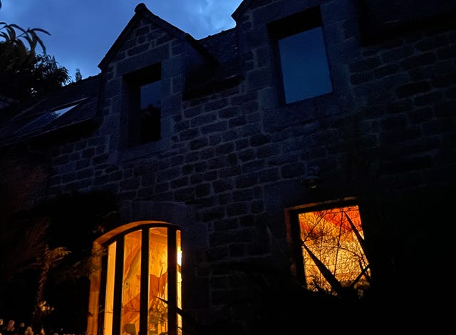 Im Erdgeschoss: eine Einbauküche offen zum Wohn-/Esszimmer mit skandinavischem Holzofen. Eine Waschküche (Waschmaschine und Waschbecken) und separaten Toiletten. Der Wäschetrockner steht im Waschraum in einem Nebengebäude.