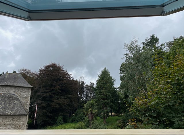 Private terrace with a view of the manor. You have free access to the 5.5 ha park.