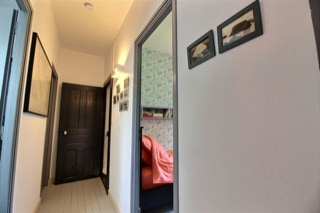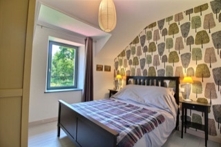 À l'étage : deux chambres avec un lit de 90 x 200 cm dans chaque chambre, une troisième chambre avec un lit double en 140 x 190 cm, une salle d'eau et un wc indépendant.