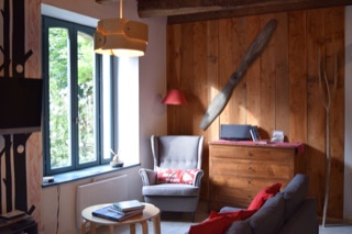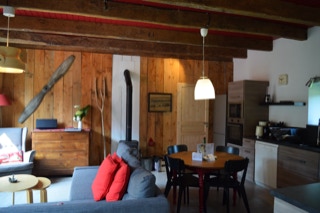 Au RDC : une cuisine équipée ouverte sur un salon séjour avec poêle à bois scandinave. Un coin buanderie et des WC indépendants.